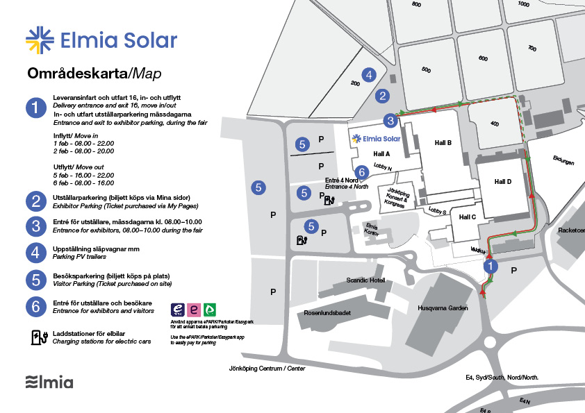 • Lossning sker automatiskt vid ankomst till mässområdet och debiteras i efterhand. Vänligen kontakta Elmia Transportservice för information.